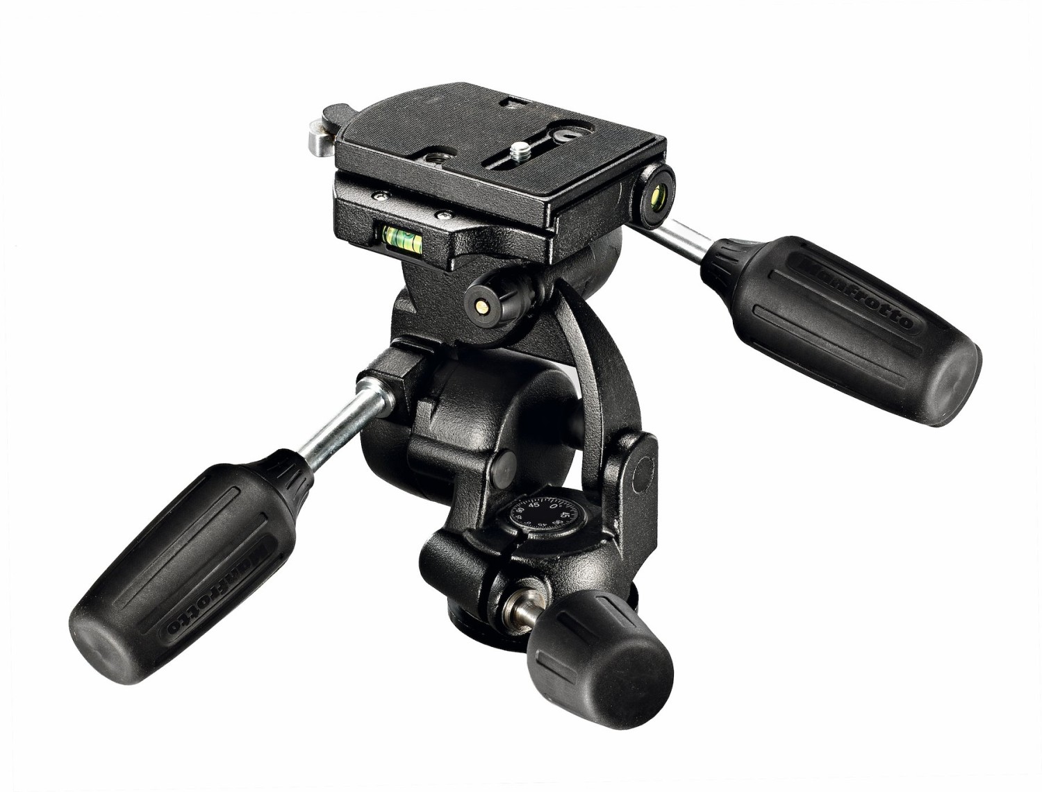El cabezal de trípode panorámico/inclinable de tres vías con engranajes Manfrotto