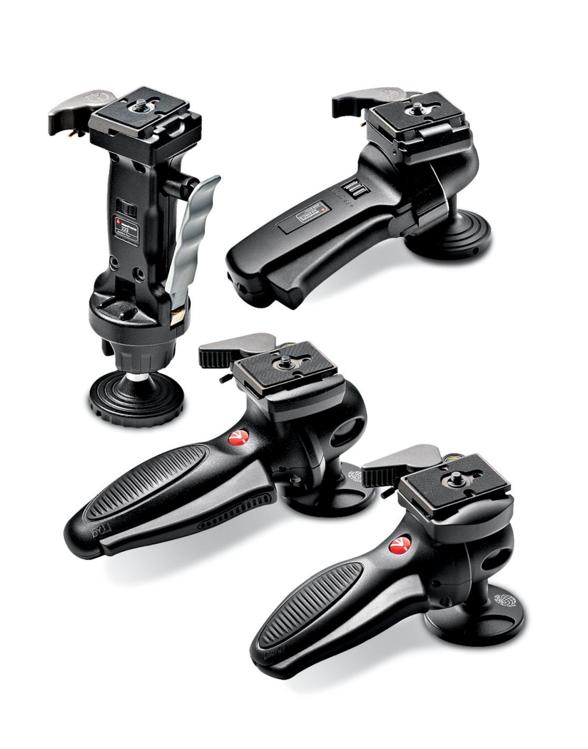 Las cámaras o accesorios compatibles con la rosca de 1/4"-20 se pueden acoplar a la placa de fijación rápida 200PL-14, que mide 4,3 x 5,4 x 1 cm y tiene una superficie de goma antideslizante. El 327RC2 está configurado de fábrica para su uso con la mano derecha. La llave Allen incluida permite reubicar el mecanismo de bloqueo de fijación rápida RC2 junto con la empuñadura de control para su uso con la mano izquierda.