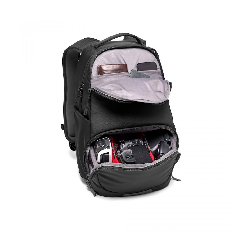 La mochilaManfrotto Advanced Active Backpack III es una mochila para el día a día, diseñada para llevar una cámara y un ordenador portátil, ideal tanto para el equipo fotográfico como para los objetos personales. La mochila está diseñada para cámaras DSLR, cámaras sin espejo y tu ordenador portátil. La mochila Active cuenta con un espacio específico para objetos personales en la parte superior y para el equipo fotográfico en la parte inferior, con acceso rápido desde la parte delantera. Su espacioso interior tiene capacidad para una DSLR o una cámara sin espejo con hasta 3 objetivos. El compartimento acolchado para la cámara está equipado con el nuevo sistema de protección Manfrotto M-Guard™ Protection System, fabricado con espuma EVA especial de alta densidad que proporciona una absorción de impactos excepcional con un perfil muy fino. Los diseños plegables y personalizables permiten una máxima versatilidad para proteger completamente la cámara y, al mismo tiempo, aprovechar al máximo el espacio. En el compartimento superior hay espacio suficiente para objetos personales, incluido un compartimento para el portátil con capacidad para un portátil de hasta 14". Esta mochila ofrece una versatilidad extrema. Al retirar las separaciones protectoras, los compartimentos superior e inferior se pueden unir para crear al instante una mochila de viaje para todo el día. En la correa lateral puedes llevar tu trípode compacto, como el popular Joby Gorillapod, y las correas acolchadas para los hombros, junto con las correas pectorales ajustables, garantizan la máxima comodidad y una distribución uniforme del peso. Todos los tejidos exteriores están tratados, lo que hace que la mochila sea repelente al agua, y en caso de condiciones meteorológicas adversas, se puede reforzar aún más con la funda impermeable incluida.