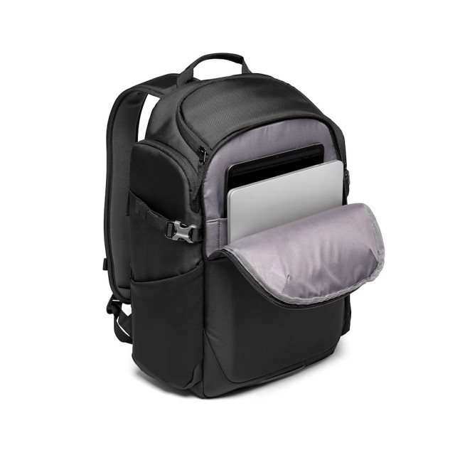 La mochila Manfrotto Advanced Befree Backpack III (MB MA3-BP-BF) es una mochila fotográfica versátil de 25 litros con acceso trasero seguro para una mayor protección del equipo, compartimentos especiales para un portátil de 15 pulgadas y una tableta de 9,7 pulgadas, espacio para una cámara réflex digital o sin espejo con un objetivo de 70–200 mm f/2,8 montado y otros objetivos, un bolsillo lateral ampliable para trípode, compatibilidad con el equipaje de mano en avión, tejido repelente al agua y funda impermeable incluida.