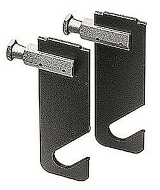 El Manfrotto 059 es un juego de dos ganchos de acero negros para fondos con pasadores hexagonales de 16 mm, diseñados para encajar en las ranuras del Super Clamp 035; admiten un solo accionador Expan 046 para fijar inmediatamente rollos de papel a la pared sin necesidad de herramientas, en un juego ligero que pesa 360 g.