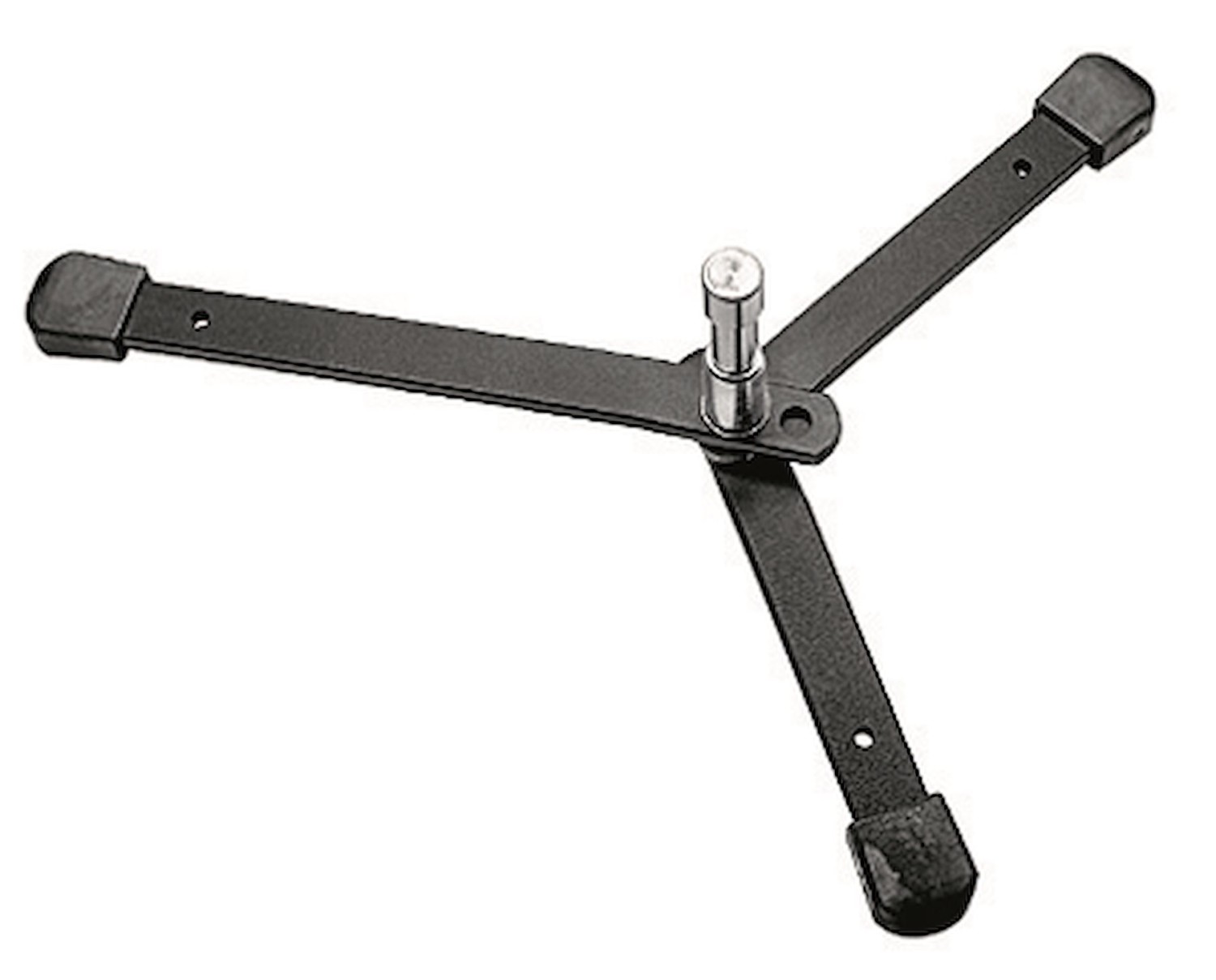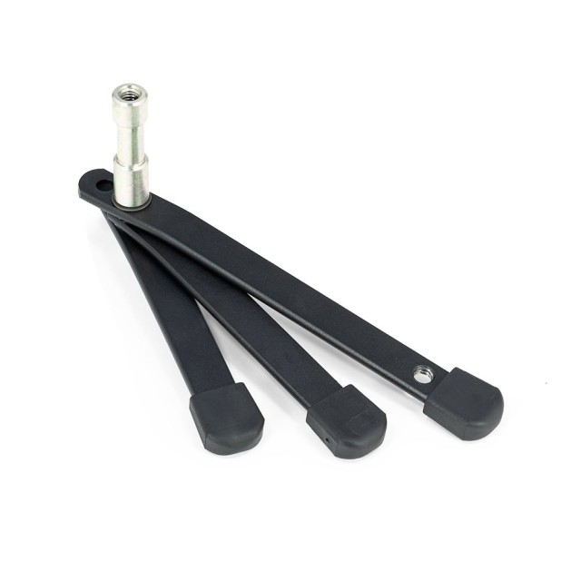 El mini trípode Manfrotto 003M Backlite es un trípode tipo araña de acero que pesa 520 g, diseñado para ofrecer un soporte firme a una altura fija de 9,7 cm. Las tres patas rectangulares forman una base de 50 cm, cada una con un orificio perforado para clavarla al suelo, atornillarla a la pared o fijarla al techo, lo que la hace ideal para instalaciones permanentes en el estudio o sesiones fotográficas en exteriores. El perno de 16 mm (5/8") con pasador de seguridad soporta hasta 10 kg, lo que lo hace ideal para pequeños reflectores Fresnel, paneles LED o luces de contorno. Su recubrimiento en polvo negro es resistente a la corrosión, lo que lo convierte en la opción ideal para equipos de cine, fotografía o vídeo que necesitan una fijación discreta y fiable sin posibilidad de ajustar la altura.
