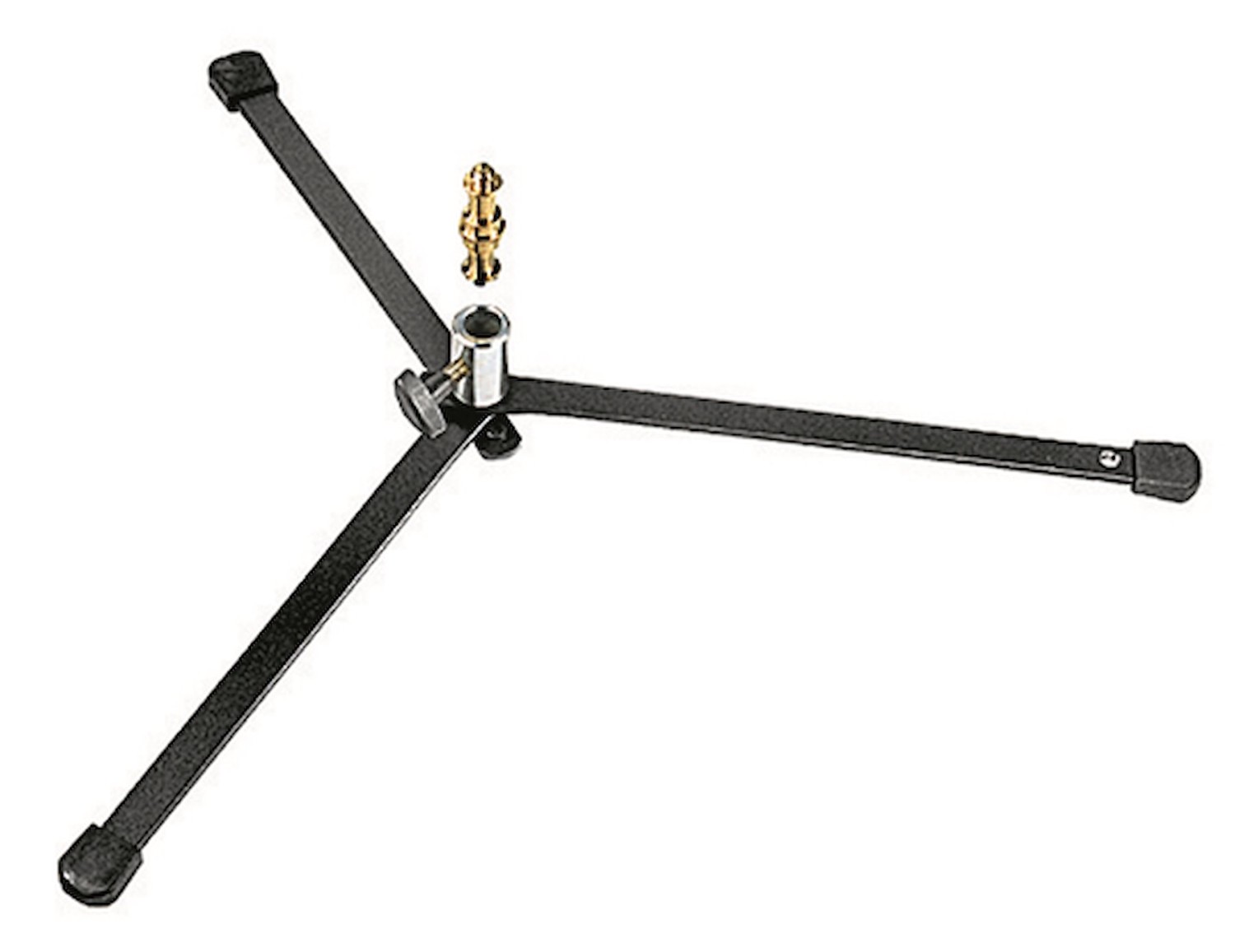 La base del soporte Manfrotto 003 Backlite Stand es una estructura de acero negro con acabado en pintura en polvo que pesa 500 g y cuenta con tres patas plegables que se pliegan hasta 34 cm para facilitar su almacenamiento. Su superficie de 60 cm garantiza la estabilidad con una carga puntual de hasta 15 kg, mientras que la rosca interior central de 16 mm (5/8") es compatible con cualquier soporte o columna estándar (por ejemplo, un elevador de soporte en C). El adaptador 013 incluido (1/4"-20 a 5/8") permite la fijación directa de una cámara o una luz pequeña. Ideal para luces de contorno, kickers o montajes de mesa de productos en estudios o en lugares donde la altura es mínima y el espacio en el suelo es limitado, en combinación con una barra corta de altura ajustable.