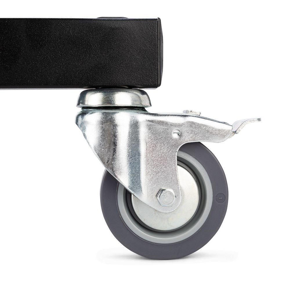 • Gran base negra con ruedas con freno para mayor movilidad y estabilidad