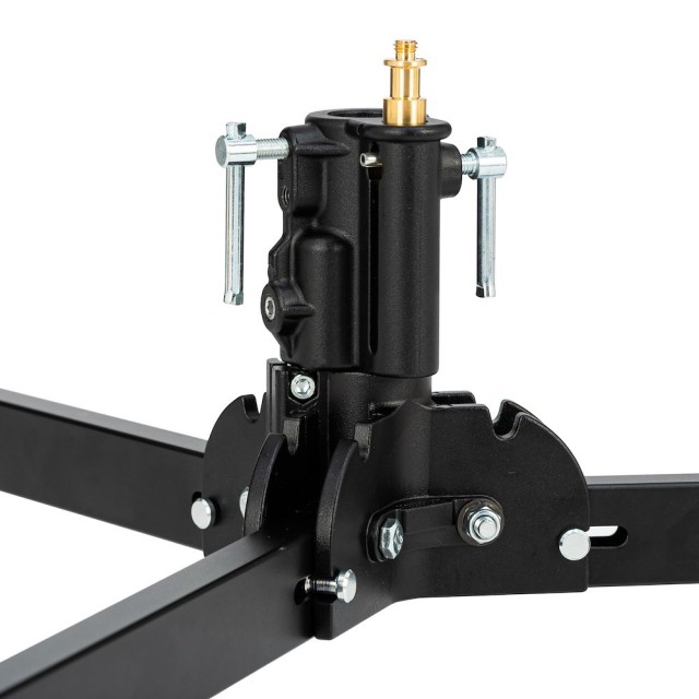 La Manfrotto 299BBASE Black Small Brake Base es un soporte con ruedas resistente y de perfil bajo que convierte cualquier poste compatible (soporte Century, soporte de iluminación o barra propia) en un soporte firme para iluminación trasera o de acento. Con unas dimensiones de 75 cm, una pata de nivelación ajustable, ruedas con freno bloqueables y una enorme capacidad de carga de 40 kg, esta base de acero de 4,8 kg se pliega de forma compacta para su almacenamiento y es la solución ideal para fotógrafos de estudio y de exteriores que necesitan desplazar de forma suave y segura luces de fondo pesadas o luces a nivel del suelo.