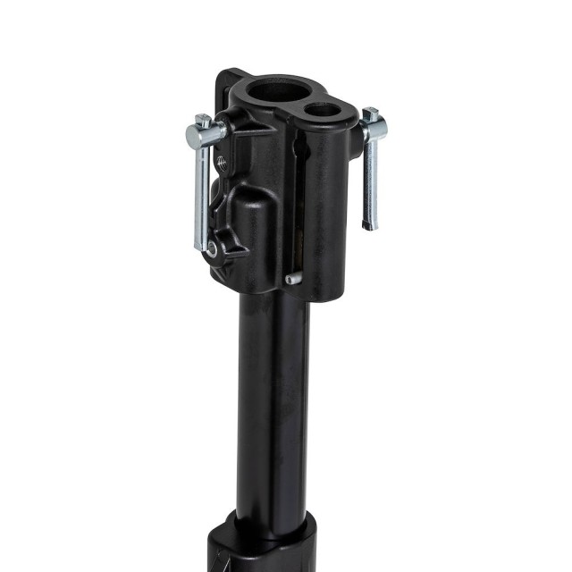 Además de su excelente funcionalidad, este ingenioso soporte cuenta con una pata niveladora que te permite ajustarlo fácilmente a la posición perfecta incluso en terrenos irregulares. El doble refuerzo de las patas proporciona mayor estabilidad y seguridad, para que puedas trabajar con rapidez y confianza, sin tener que preocuparte de que algo se deslice. También está equipado con un cabezal universal tipo 14 y alcanza una altura máxima de 477 cm. Compatible con las ruedas 103, 104 y 104G.