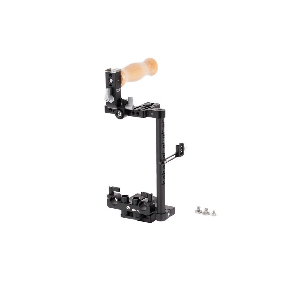 El paquete incluye una abrazadera para cable HDMI que sujeta los cables de vídeo y protege los puertos contra daños, mientras que las cámaras con pantallas LCD abatibles se pueden colocar fácilmente. La jaula admite una abrazadera de barra de 15 mm de altura ajustable para una alineación correcta con las barras y los accesorios, lo que garantiza la compatibilidad con los componentes estándar de los rigs. Su diseño también incluye puntos de fijación antideslizantes compatibles con los estándares Manfrotto 244MICRO-AR y Arri.