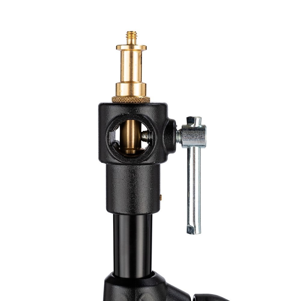 Ilumina tus sesiones de estudio como nunca antes. Este soporte de iluminación de aluminio es ideal para fotógrafos de retratos y de productos gracias a su estructura ligera y muy manejable, que permite montarlo y desmontarlo rápidamente.