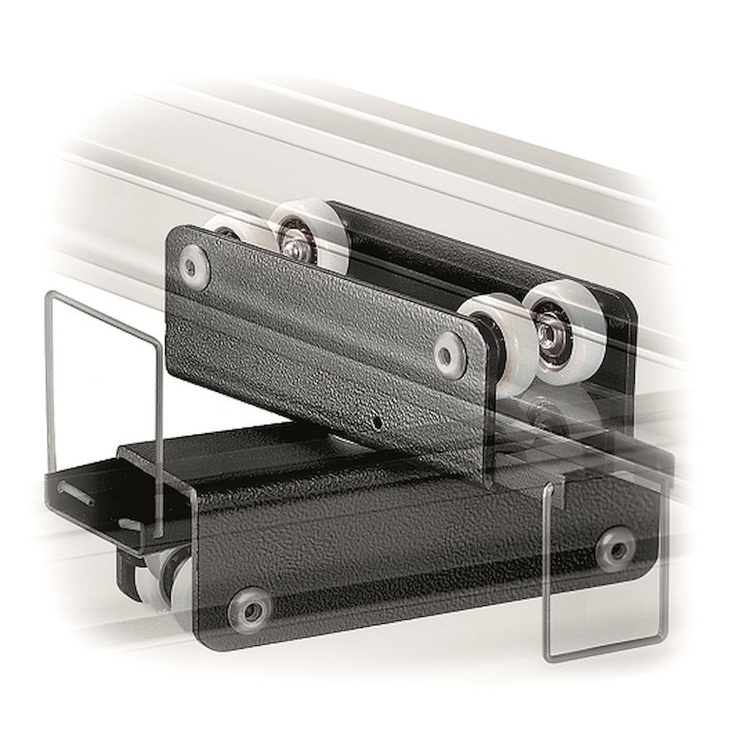 Este carro doble está equipado con dos sistemas de frenos independientes. El freno superior fija firmemente el carro al riel fijo y evita movimientos indeseados durante el funcionamiento. Por su parte, el freno inferior del carro bloquea el movimiento de deslizamiento del riel móvil y garantiza un posicionamiento preciso y un ajuste controlado. Esta configuración de doble freno es ideal para estudios donde la precisión, la repetibilidad y la seguridad son fundamentales.