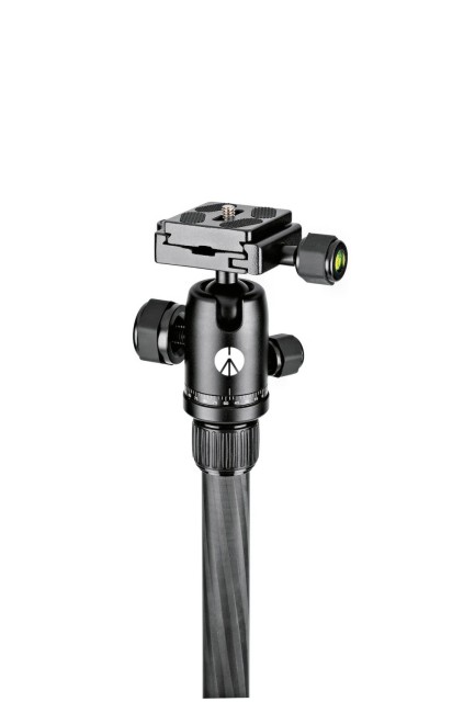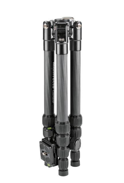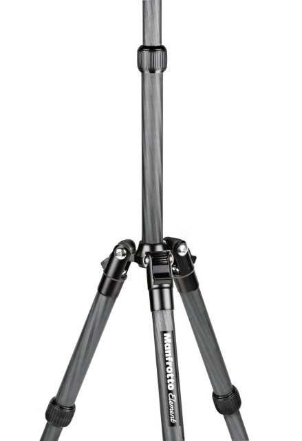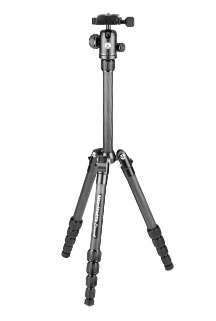 El pequeño trípode Manfrotto MKELES5CF-BH Element Traveller con rótula es un kit de viaje ultraportátil que pesa 1,05 kg, se pliega hasta alcanzar los 32 cm, se extiende hasta 143 cm y soporta una carga de 6 kg de cámaras CSC, con una rótula de aluminio tipo Arca de movimiento suave, bloqueo de giro independiente de 360°, patas con bloqueo giratorio y tres ángulos de inclinación, y columna central telescópica, además de una bolsa de transporte acolchada.
