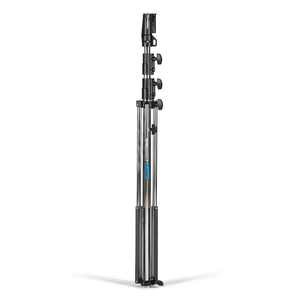 El soporte está equipado con un cabezal universal tipo 14 y ofrece una abrazadera de 28 mm, un pivote de 16 mm y una fijación roscada de 3/8”, lo que permite la compatibilidad con una amplia gama de accesorios profesionales de iluminación y de estudio. Con una altura máxima de 333 cm y una altura mínima de 131 cm, es lo suficientemente versátil para configuraciones tanto bajas como altas.