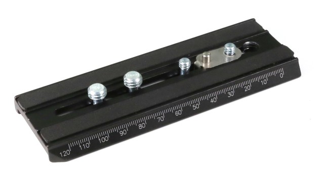 Esta placa de fijación rápida alargada para cabezales de vídeo permite equilibrar a la perfección las videocámaras con una distribución del peso inusual, provocada por objetivos largos o baterías pesadas. La placa cuenta con una escala grabada con láser que ayuda a determinar la posición óptima (110 mm). Para lograr el máximo rango de posiciones equilibradas, el pasador de posicionamiento VHS se puede desplazar a lo largo de toda la placa. Se suministra con tornillos de fijación de 2 x 1/4" y 2 x 3/8".