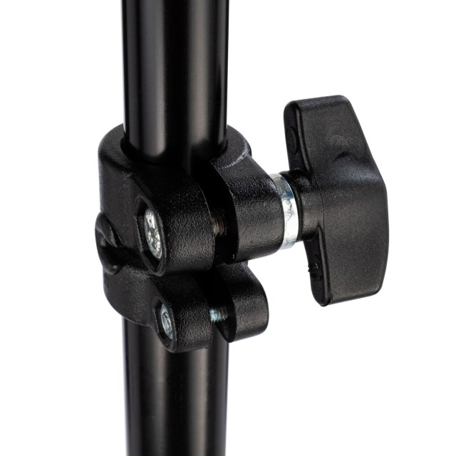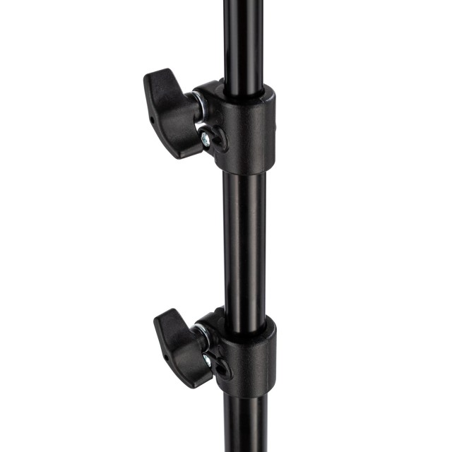El Manfrotto 157B-4 es un soporte para micrófono clásico de cuatro secciones, probado en la práctica, diseñado para el uso profesional diario. Está fabricado en aluminio anodizado negro, se extiende de forma continua hasta una longitud de 223 cm (más de 7 pies), pero se pliega hasta alcanzar unos compactos 67 cm para su transporte. El extremo superior cuenta con un soporte universal Baby de 5/8″ con una punta roscada extraíble de 3/8″, compatible con prácticamente todos los soportes amortiguados, pinzas para micrófono o accesorios disponibles en el mercado. Los cierres giratorios positivos garantizan un deslizamiento nulo bajo carga, mientras que su diseño ligero, con un peso de 610 g, minimiza la fatiga del usuario durante las grabaciones prolongadas.
