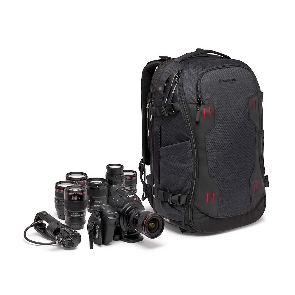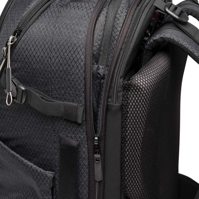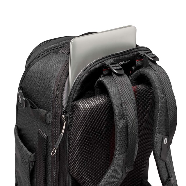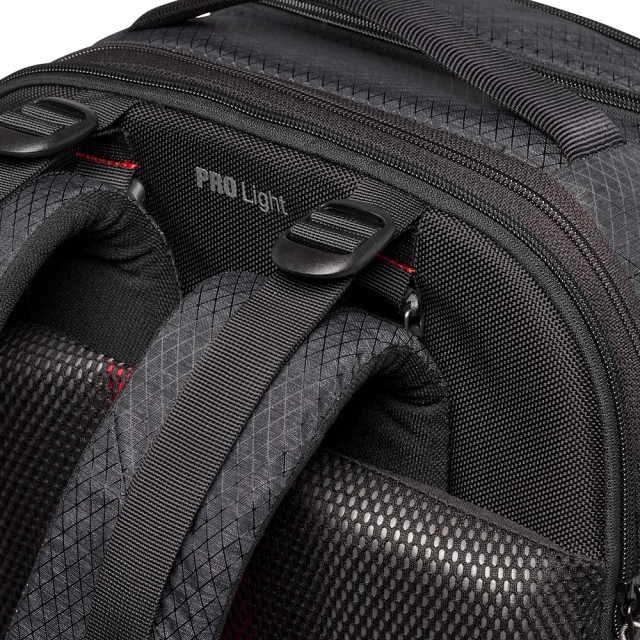 SAS-TEC, una espuma viscoelástica con memoria y resistencia multifuncional, también aporta un refuerzo estructural a la base de la mochila para ofrecer propiedades adicionales de amortiguación de impactos. Para mayor tranquilidad, se puede utilizar un candado homologado por la TSA para asegurar el cable de acero que bloquea el compartimento principal. La mochila PRO Light Flexloader ofrece un compartimento totalmente acolchado con un espacio interior adaptable. El acceso completo desde la parte delantera permite organizar y manipular fácilmente el equipo