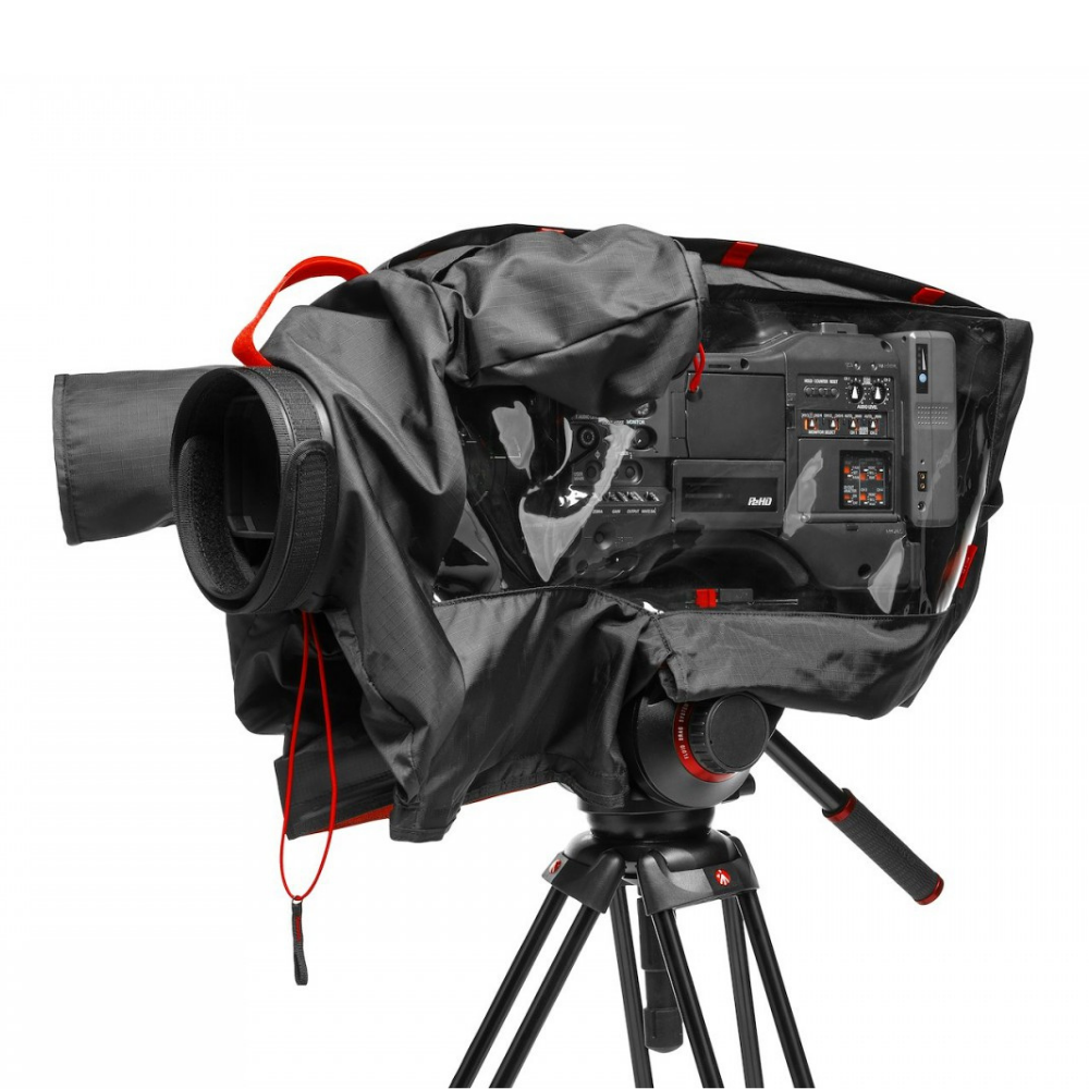 Cubierta del elemento de la cámara Pro Light RC-1 para PDW-750 y PXW-X500 Si necesitas proteger tu videocámara de gran tamaño de la lluvia y otras inclemencias meteorológicas, no busques nada más que esta funda impermeable Manfrotto Pro Light Camera Element. El mal tiempo no tiene por qué significar que tus planes deban cancelarse. Esta protección impermeable contra la lluvia resiste sin problemas incluso el aguacero más intenso.