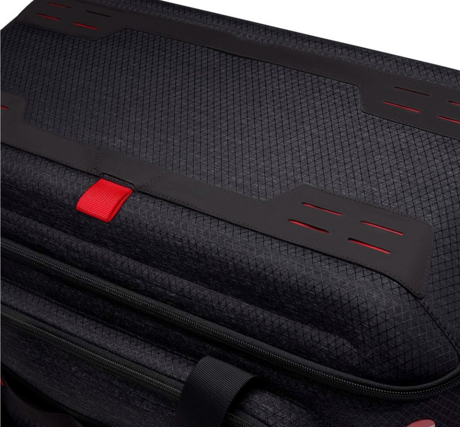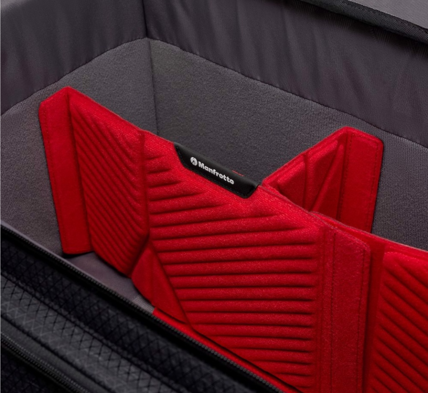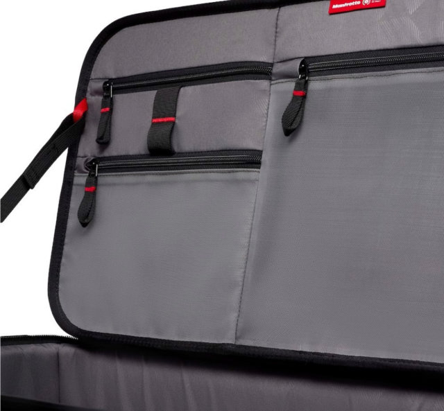 La tapa superior se caracteriza por un nuevo enfoque híbrido de protección. Se han combinado materiales blandos y duros para crear una nueva característica única: gracias a la tapa protectora termomoldeada de material EVA, los profesionales podrán transportar su equipo con tranquilidad, independientemente de las condiciones. Gracias a esta plataforma rígida, la tapa superior puede albergar un juego de trípodes de vídeo Fast, y se pueden apilar entre sí otras bolsas Cineloader completamente cargadas sin tener que preocuparse de que se dañe su contenido. La tapa también ofrece 3 bolsillos transparentes y dos presillas para llevar un bolígrafo u otros accesorios delgados.