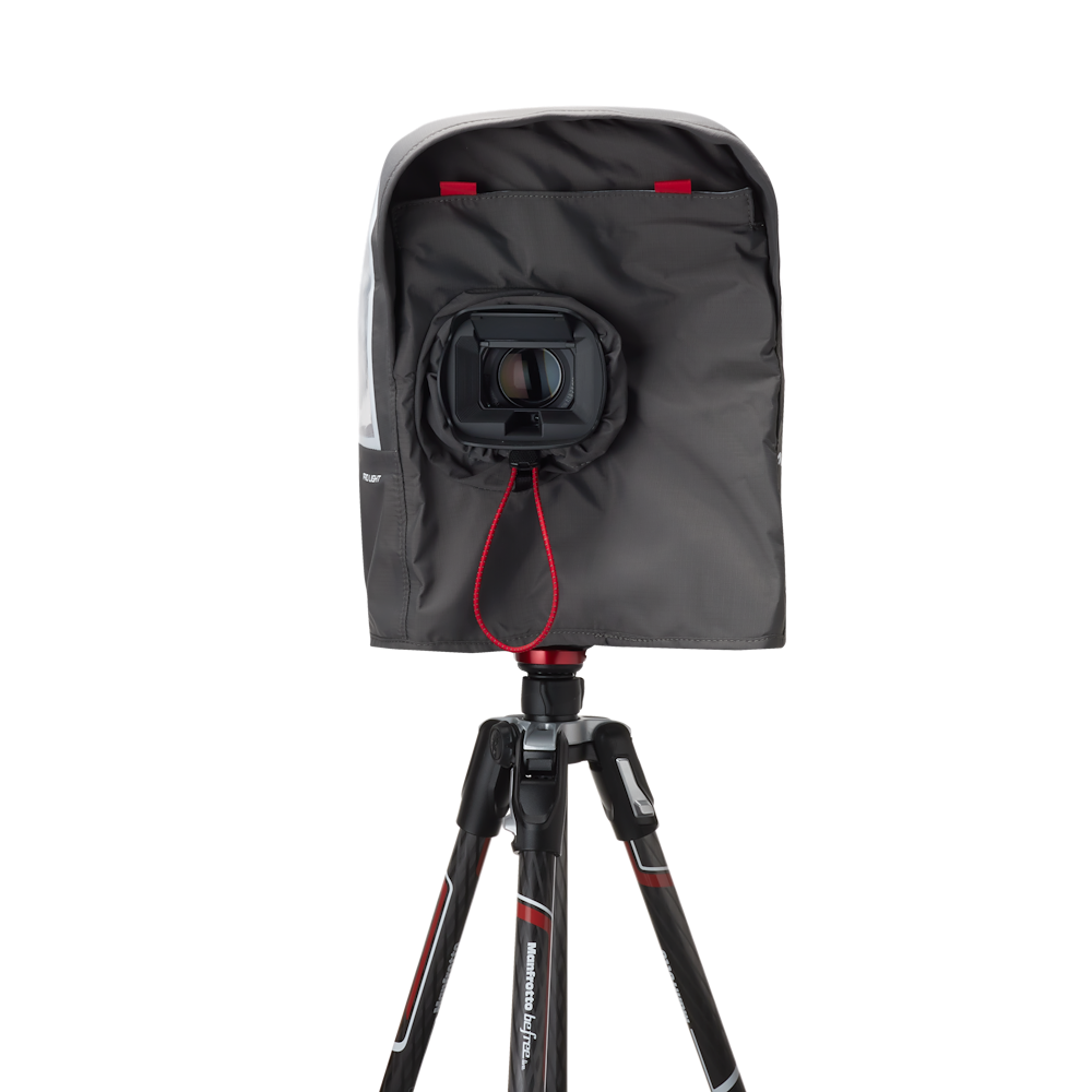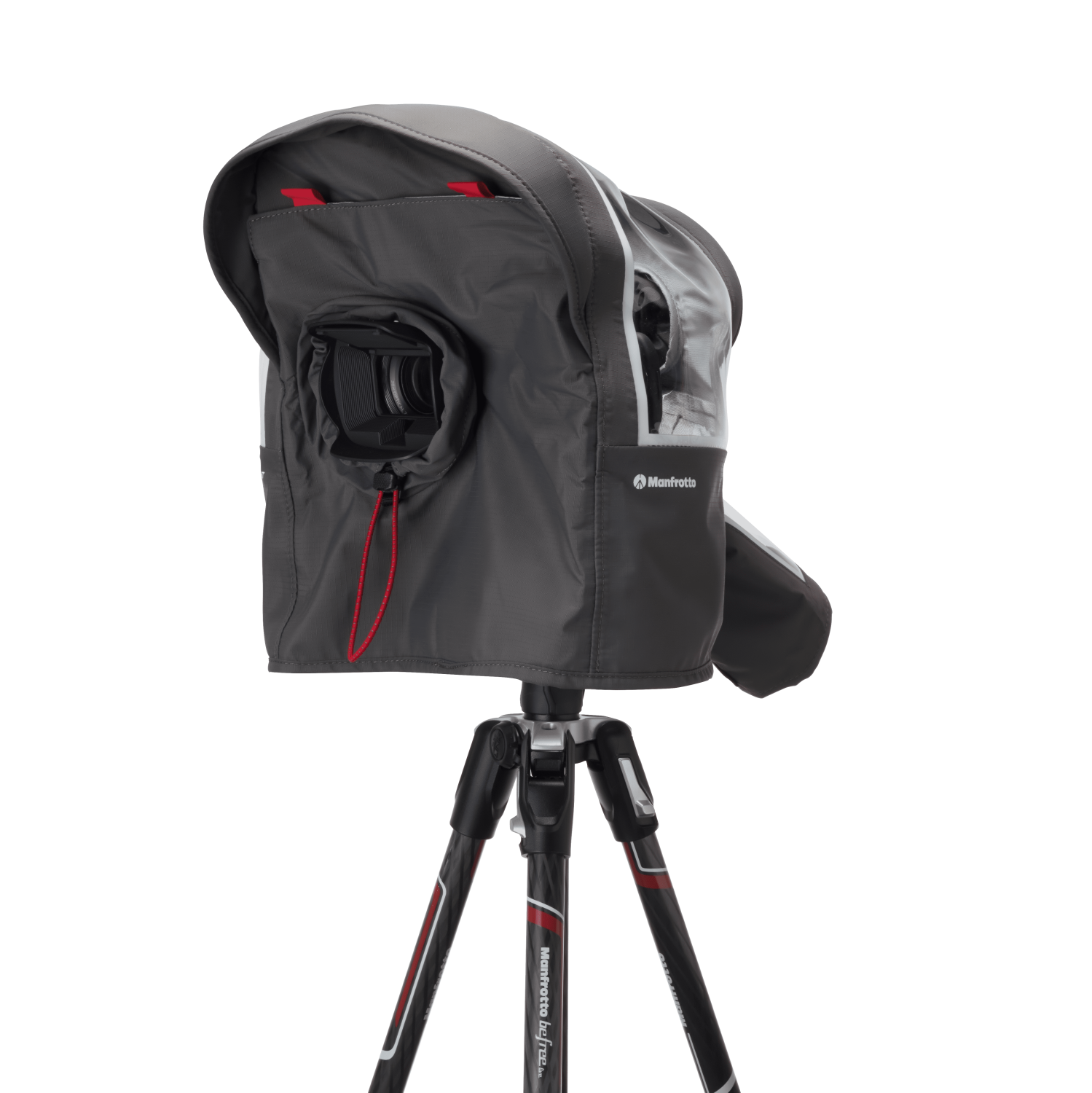 El Manfrotto MB PL-CS-SM Pro Light Cineshield S/M es una funda protectora premium contra la lluvia diseñada para proteger las cámaras de vídeo pequeñas y medianas y sus accesorios de la lluvia. Cuenta con una gran ventana transparente que facilita el manejo de la cámara, una estructura impermeable de tres capas y una cubierta especial para el mando a distancia, lo que garantiza una protección fiable en cualquier condición meteorológica.