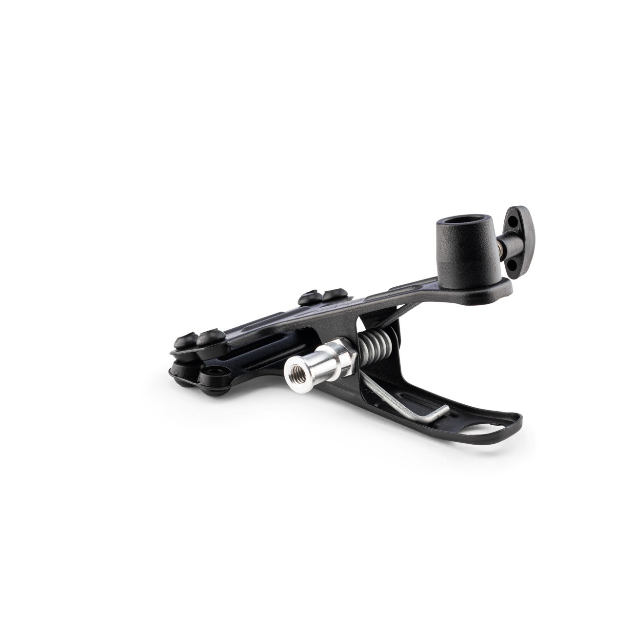 La Manfrotto 175Z Spring Clamp es una resistente abrazadera de resorte de acero italiano que pesa 320 g y se adapta a barras, tubos, estantes o soportes de hasta 40 mm de grosor, proporcionando al instante un pivote de 15,9 mm (5/8″ Baby) con rosca interna de 1/4″-20 en una de las asas, lo que la convierte en la ayuda perfecta para montar pequeñas luces, cámaras, reflectores, fondos o incluso otras pinzas, tanto en el estudio como en exteriores.