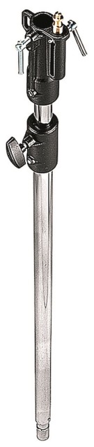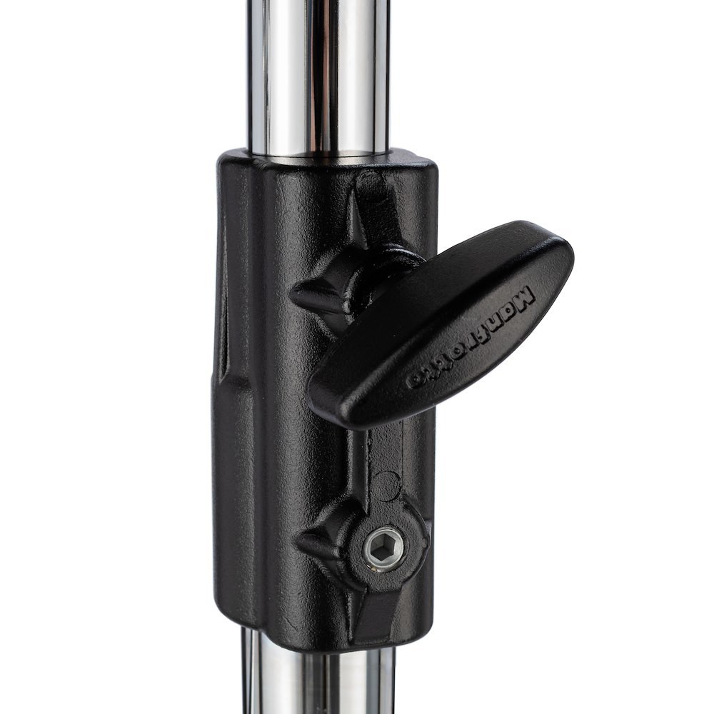 El Manfrotto 142CS es una resistente barra extensible de dos tramos fabricada en acero cromado (125–210 cm) que se puede acoplar directamente a cualquier trípode con un receptor junior (28 mm) o a un trípode en C, lo que permite añadir de forma segura hasta 85 cm de altura. Gracias a sus robustos tubos de acero de 35 mm y 30 mm de diámetro y a su cabezal universal con abrazadera junior de 28 mm + pivote baby de 16 mm + rosca de 3/8″, se trata de una clásica barra de extensión hollywoodiense para elevar grandes luces, marcos de techo o mariposas de 12×12 cuando su trípode enrollable o trípode en C simplemente no es lo suficientemente alto.