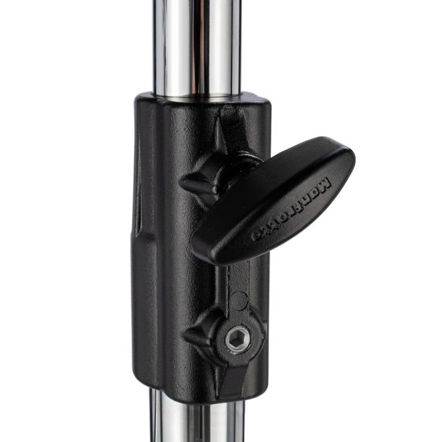 El Manfrotto 142CS es la versión de acero del legendario trípode extensible de Manfrotto, construido como un tanque para el uso diario. La parte inferior está formada por un pivote junior de 28 mm, mientras que la parte superior cuenta con una abrazadera junior completa, además de un pivote pequeño y una rosca de 3/8″; dos robustas piezas de acero cromado se fijan mediante abrazaderas grandes y seguras. Con un peso de 3,6 kg, es más pesado que el modelo de aluminio 142B, pero nada lo supera cuando se necesita una rigidez absoluta con grandes HMI, softboxes pesados o marcos grandes a plena extensión.