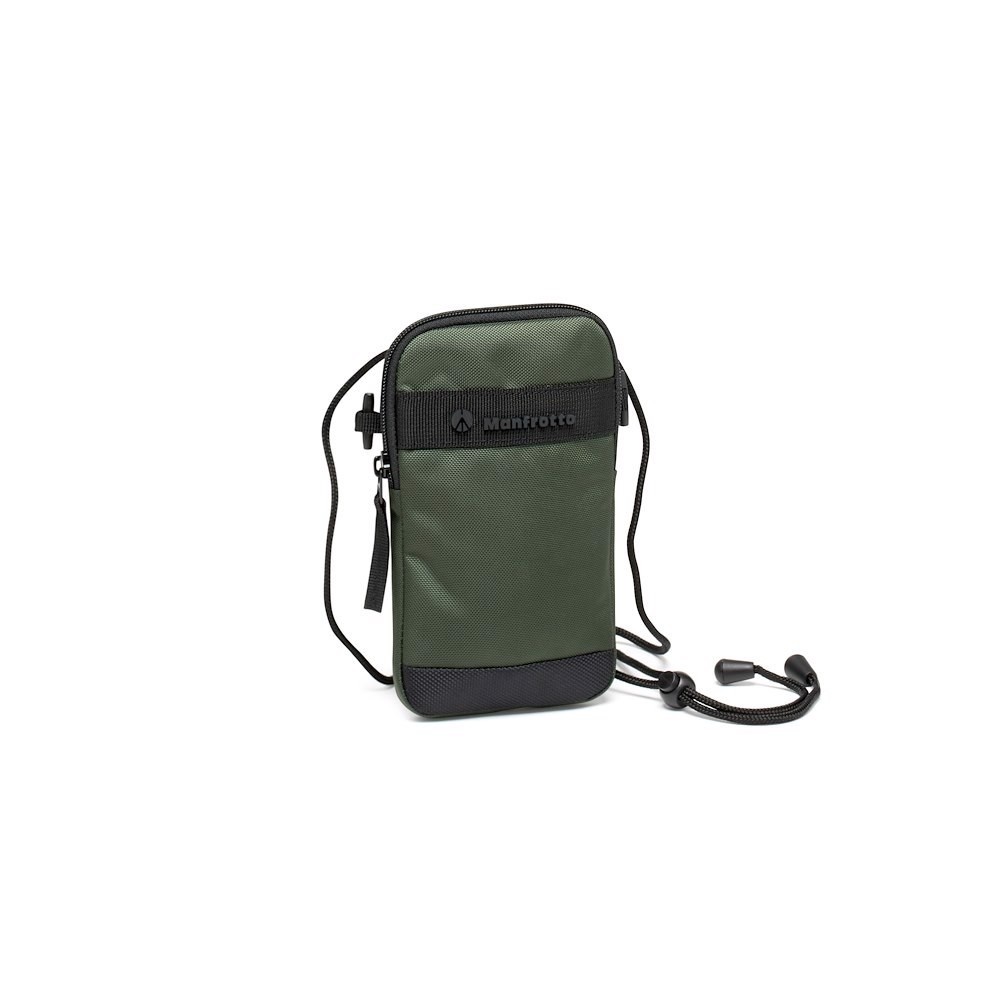 La Manfrotto MB MS2-CB Street Crossbody Pouch es una minibolsa de color verde oscuro y resistente al agua con una capacidad de 1 litro (13 × 1,5 × 20 cm), que cuenta con una correa extensible y ajustable con cordón de ajuste, un bolsillo exterior magnético, dos bolsillos laterales interiores, una presilla para llaves y clips para fijarla a la mochila Street Slim Backpack o al bolso Convertible Tote; ideal para smartphones de 6,8" y los objetos esenciales del día a día, pesa solo 100 g.