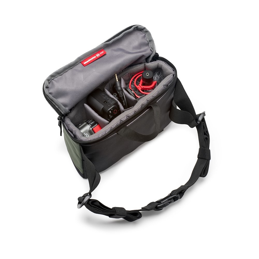 La bolsa Manfrotto Street Waist Bag se transforma de riñonera a bandolera gracias a su correa de 4 cm de ancho, doblemente ajustable y con una resistente hebilla de liberación rápida. El compartimento principal con cremallera se abre de arriba abajo para un acceso inmediato al equipo, mientras que el forro acolchado extraíble con separadores móviles tiene capacidad para una cámara CSC (A6400, EOS M50) con el objetivo del kit y un objetivo fijo, o un kit de vlogging con micrófono/LED. Si retiras el separador, obtienes un bolso de 2 litros para el uso diario, ideal para el teléfono, la cartera y las llaves. Con un peso de tan solo 300 g, es la solución ideal para fotógrafos callejeros, personas que se desplazan diariamente al trabajo o pilotos de drones que necesitan un transporte rápido y flexible.