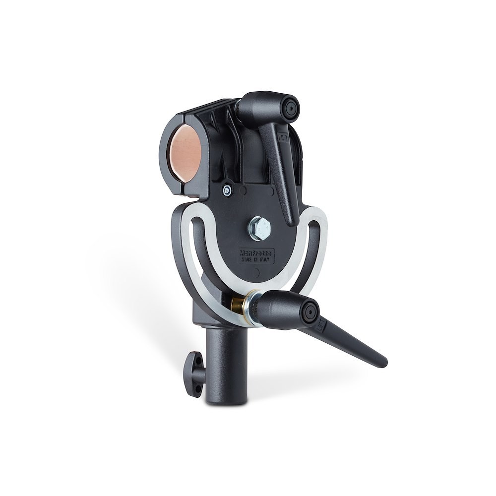 La abrazadera giratoria Manfrotto 123 Super Boom está diseñada para instalaciones profesionales en estudio y exteriores, y ofrece flexibilidad de giro para los Super Booms y Heavy Duty Booms con ejes de 35 mm de diámetro. Su robusta construcción garantiza una colocación estable y segura del equipo de iluminación o de cámara, al tiempo que permite un ajuste suave en varias direcciones.
