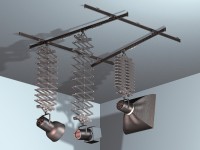El FF3033 «System 33» es una solución clásica de Manfrotto con un riel de techo preconfigurado para una sala de fotografía típica de entre 3 y 4 m de ancho. Dos rieles fijos se montan en paralelo a la pared, mientras que dos rieles móviles se desplazan perpendicularmente sobre los carros, creando así una cuadrícula X-Y completa que permite que tres focos se deslicen silenciosamente a cualquier posición sobre la escena. El pantógrafo de resorte incluido equilibra perfectamente cargas de 2 a 10 kg (ampliables a 18 kg mediante resortes opcionales más potentes) y, cuando no se utiliza, se pliega casi hasta el techo. Los postes telescópicos permiten una altura de descenso flexible y todo el sistema está anodizado en negro para eliminar los reflejos. Posteriormente, se puede ampliar fácilmente con más pantógrafos, rieles o control motorizado.