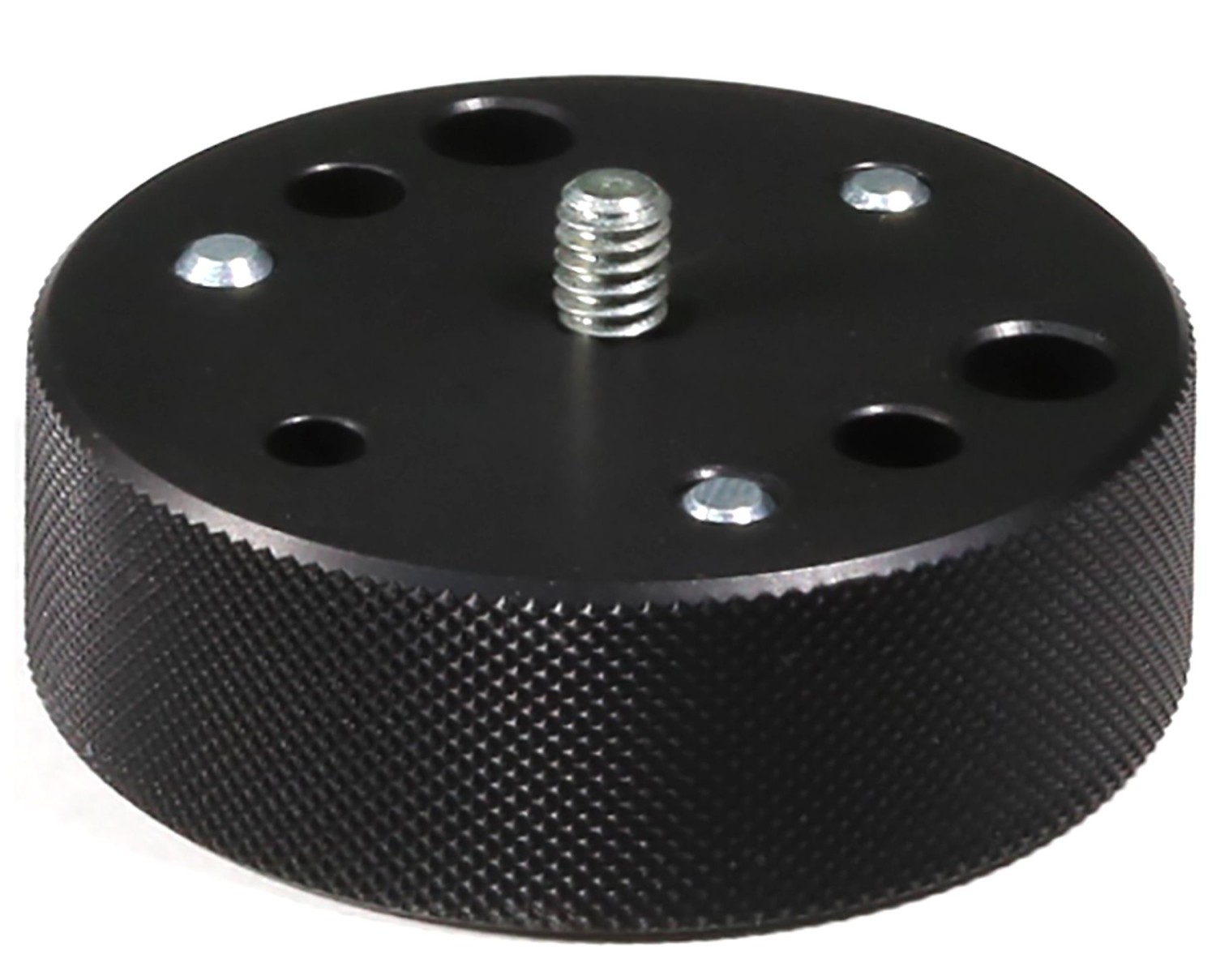 La Manfrotto 120 es una robusta placa adaptadora de aluminio de 60 mm que se puede atornillar a cualquier trípode o soporte con rosca exterior de 3/8″-16 y proporciona inmediatamente una rosca exterior firme de 1/4″-20, lo que le permite acoplar cabezales ligeros que solo tienen una rosca de 1/4″-20 y utilizarlos con seguridad en soportes y trípodes profesionales de 3/8″ sin que se tambaleen ni corra el riesgo de dañarlos.