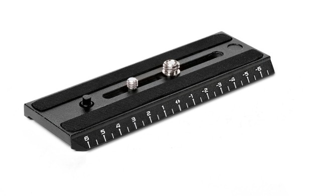 La placa deslizante para cámara con regla métrica es compatible con los cabezales de vídeo fluidos de Manfrotto: MVH400AH, MVH502AH, MVH502A, 504HD, 509HD, MVHN8AH y MVHN12AH. Se suministra con 2 tornillos de 1/4” para cámaras, 2 adaptadores de rosca de 1/4” a 3/8” y 2 pasadores antirrotación.
