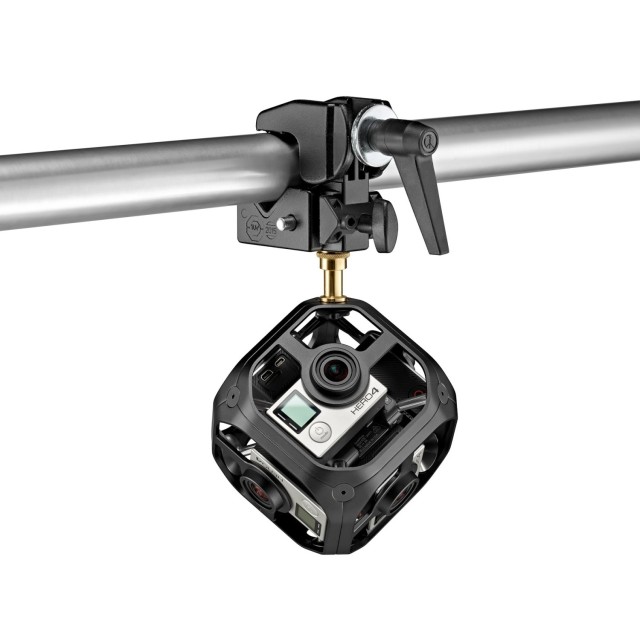 La Manfrotto M035VR Virtual Reality Super Clamp es una abrazadera de aluminio de 410 g (abertura de 13–55 mm) con una capacidad de carga de 15 kg, diseñada para fijar cámaras de 360° a cilindros, objetos planos o irregulares; proporciona una sujeción firme y un control total del movimiento para la captura de imágenes en realidad virtual y 360° en…