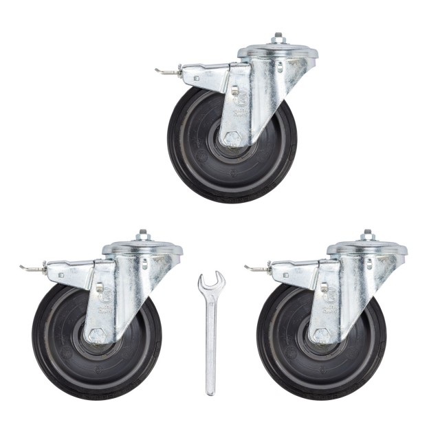 • 3 ruedas de poliuretano de 160 mm con rodamientos sellados