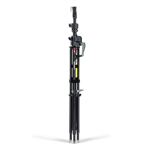El trípode fotográfico Manfrotto 087NWB Wind Up es una herramienta imprescindible para fotógrafos y cineastas profesionales que exigen la máxima solidez, precisión y fiabilidad. Este resistente trípode está fabricado en acero cromado negro de alta resistencia y está diseñado para soportar con facilidad grandes equipos de iluminación, cámaras y accesorios. Está equipado con una columna de enrollado dentada de tres secciones y dos extensiones de altura, lo que permite un ajuste suave y controlado de la altura hasta unos impresionantes 370 cm, lo que lo hace ideal para iluminaciones desde ángulos elevados y montajes por encima de la cabeza.