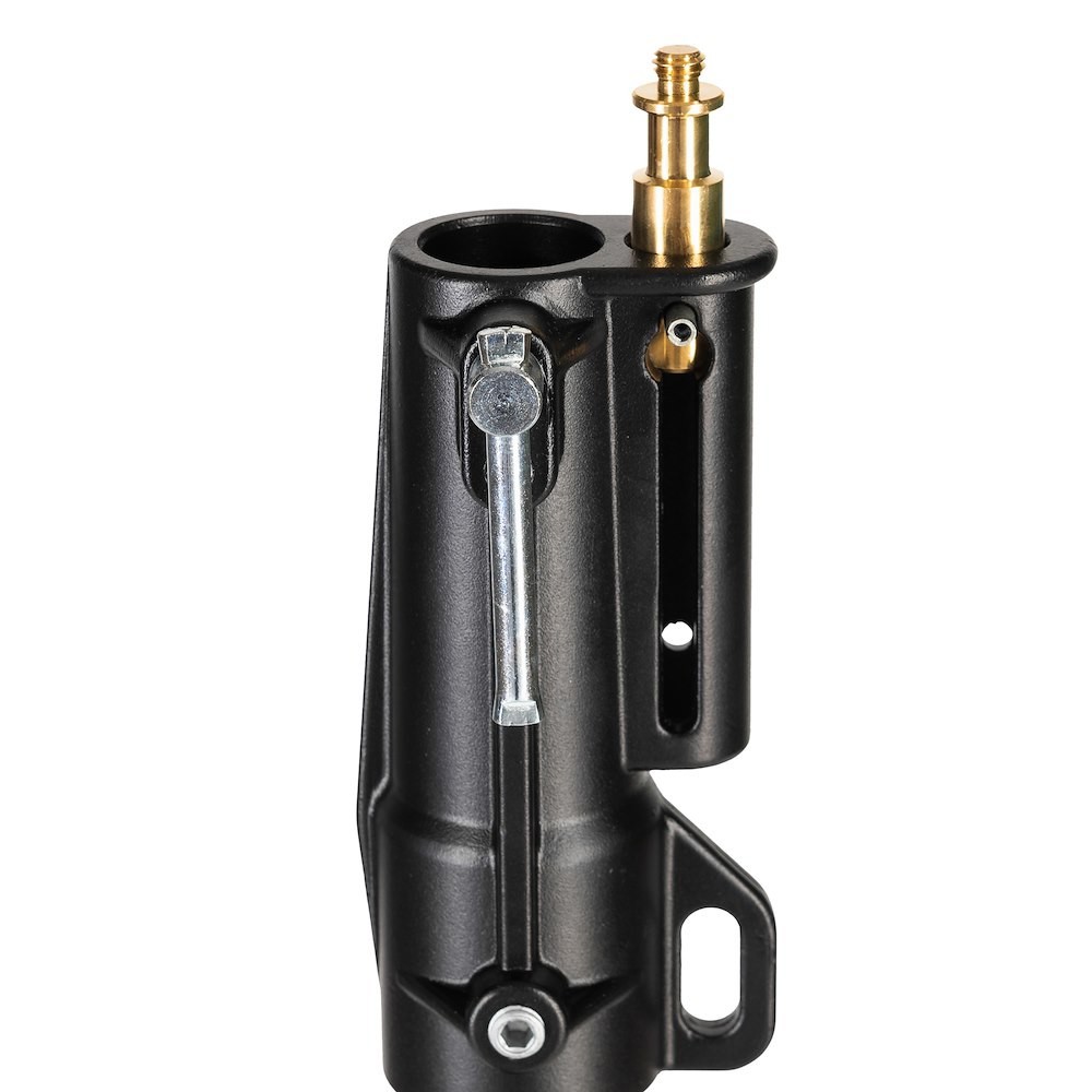 El soporte está diseñado para condiciones exigentes y cuenta con una pata niveladora que garantiza la estabilidad en terrenos irregulares y un funcionamiento seguro incluso con cargas pesadas. Los soportes superiores universales —que incluyen un tornillo de 16 mm, un casquillo de 16 mm y un tornillo de 3/8″—garantizan una amplia compatibilidad con equipos profesionales de iluminación y fijación. Para una mayor movilidad en entornos de estudio, se pueden añadir ruedas opcionales. Gracias a su construcción robusta, su alta capacidad de carga y sus certificaciones profesionales, el 087NWB es una solución fiable para procesos de producción exigentes.