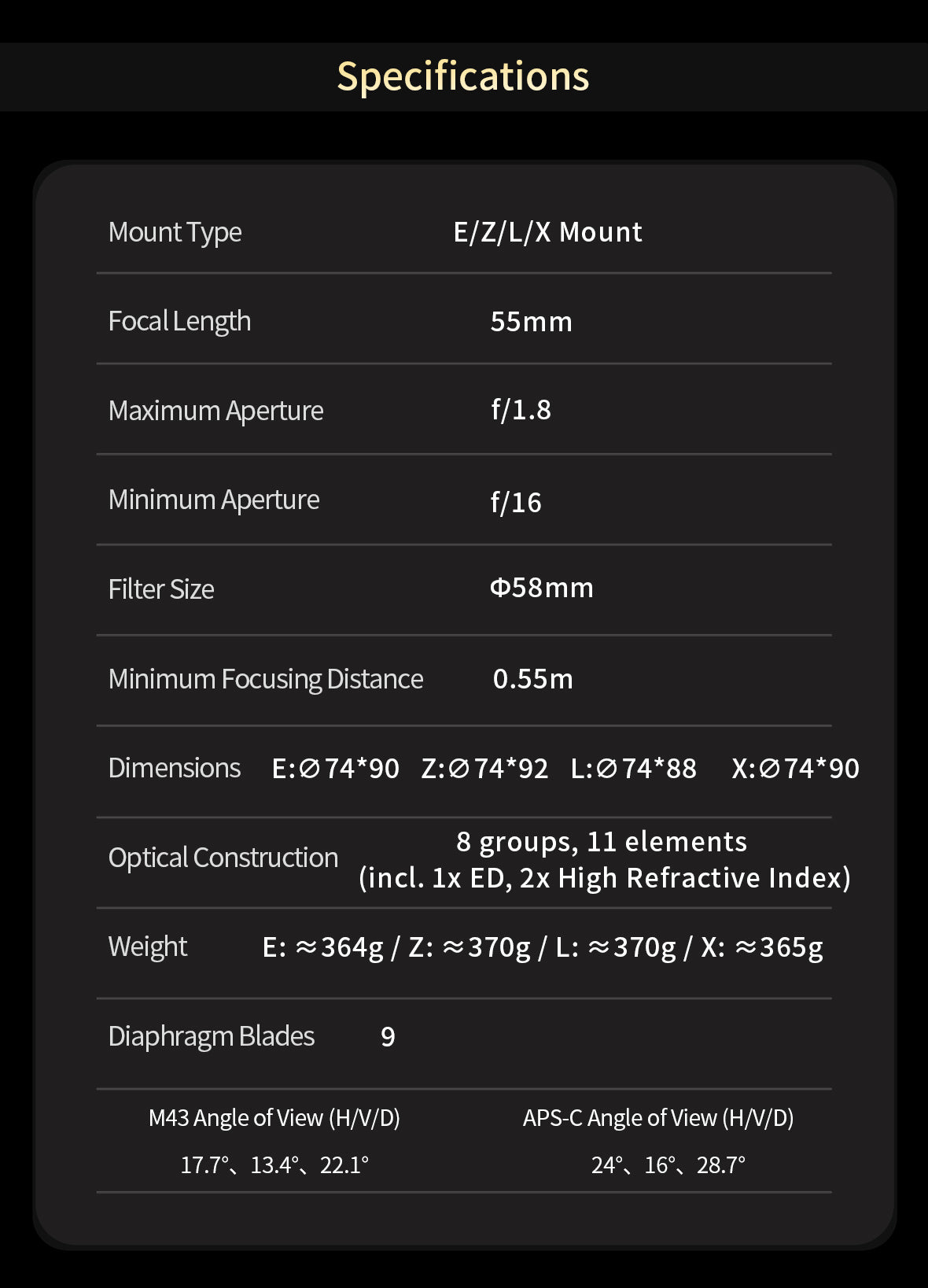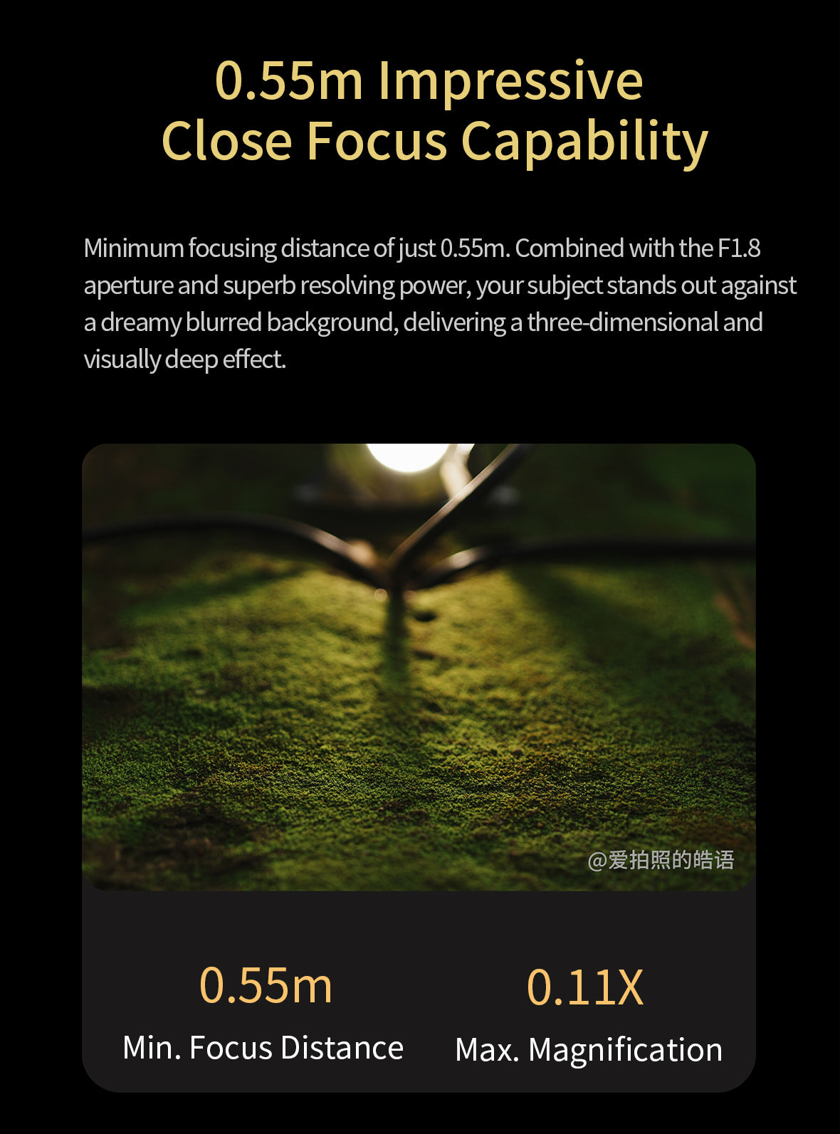 El 55 mm F1,8 es compatible con cámaras de alta resolución y sensores 8K. Es capaz de reproducir cada detalle de la imagen. Su gran resolución satisface las exigencias más elevadas en cuanto a calidad de imagen.