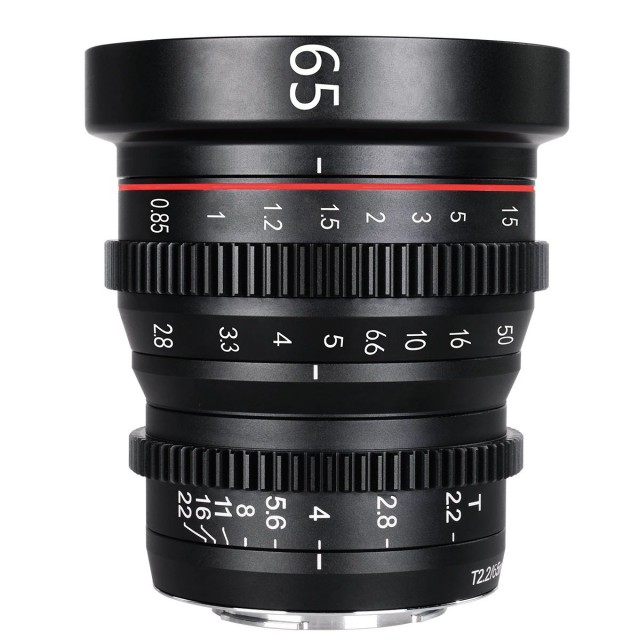 Objetivo cinematográfico totalmente manual con una luminosidad de T2,2 y una distancia focal de 65 mm. El objetivo ofrece una imagen nítida con un mínimo de aberraciones cromáticas y un rendimiento suave fuera del plano de enfoque, un efecto de «respiración» minimizado y un recorrido largo del anillo de enfoque (270°) con dentado M0,8 y marcas precisas (precisión de aprox. 10”; el anillo del diafragma también cuenta con dentado). Variante para montura E.