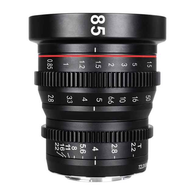 Objetivo cinematográfico totalmente manual con una luminosidad de T2,2 y una distancia focal de 85 mm. El objetivo ofrece una imagen nítida con un mínimo de aberraciones cromáticas y un rendimiento suave fuera del plano de enfoque, un efecto de «respiración» minimizado y un recorrido largo del anillo de enfoque (270°) con dentado M0,8 y marcas precisas (precisión de aprox. 10”; el anillo del diafragma también cuenta con dentado). Versión para montura E.