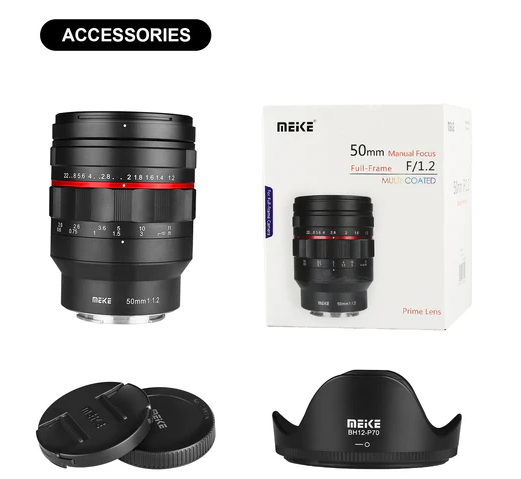 El objetivo Meike 50 mm F1,2 con gran apertura y enfoque manual (montura L) ofrece una apertura máxima de f/1,2, lo que garantiza un bokeh espectacular y un rendimiento excelente en condiciones de poca luz. Este objetivo totalmente manual es ideal para fotografía macro, retratos y condiciones de poca luz; está diseñado con una robusta estructura metálica y revestimientos multicapa para una calidad de imagen excepcional.