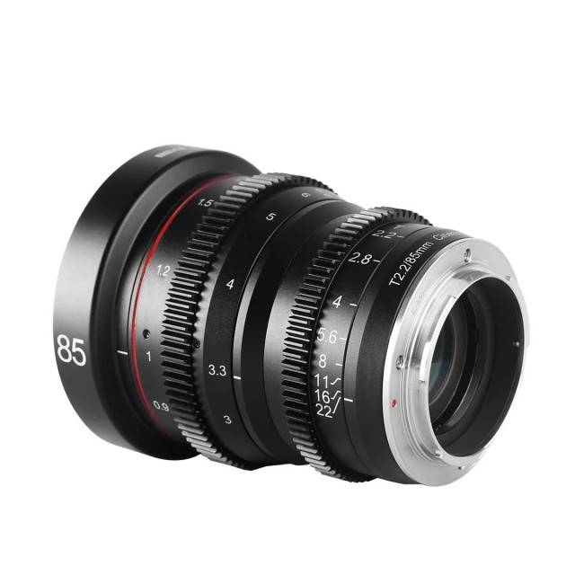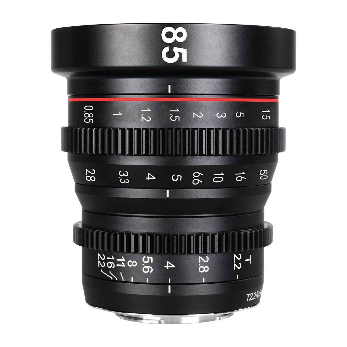 Objetivo cinematográfico gran angular totalmente manual con una luminosidad de T2,2 y una distancia focal de 85 mm. El objetivo ofrece una imagen nítida con un mínimo de aberraciones cromáticas y un rendimiento suave fuera del plano de enfoque, un efecto de «respiración» minimizado y un recorrido largo del anillo de enfoque (270°) con dentado M0,8 y marcas precisas (precisión de aprox. 10”; el anillo del diafragma también cuenta con dentado). Para montura MFT.