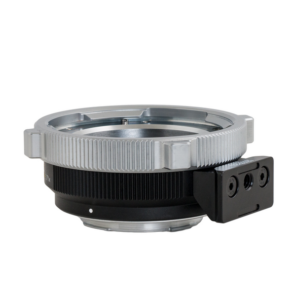 El adaptador está fabricado en una resistente aleación de aluminio y latón, y cuenta con una montura PL con bloqueo positivo que garantiza una fijación segura del objetivo y reduce los reflejos internos gracias a su revestimiento de fieltro. La base de trípode extraíble tipo Arca ofrece compatibilidad con diversos sistemas de trípode, incluidos Arca Swiss, Markins y Photo Clam.