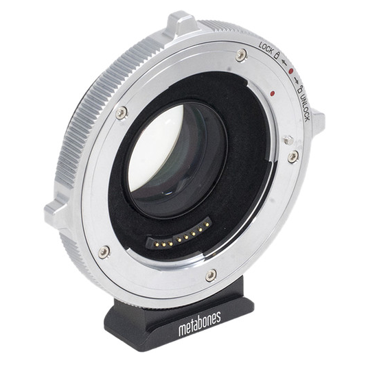 Aumenta el rendimiento de tus objetivos Canon con montura EF para formato completo o APS-C cuando utilices una cámara Micro Four Thirds gracias al adaptador Metabones T CINE Speed Booster ULTRA 0,71x (quinta generación). Este adaptador electrónico de estilo cinematográfico está equipado con una montura Canon EF con bloqueo positivo que sujeta tus objetivos de forma segura, mientras que la óptica reduce el factor de recorte de 2x a aproximadamente 1,4x al ampliar el objetivo en 0,71x y aumentar la apertura máxima en aproximadamente 1⅓ de paso para un mejor rendimiento en condiciones de poca luz y un mayor control de la profundidad de campo.