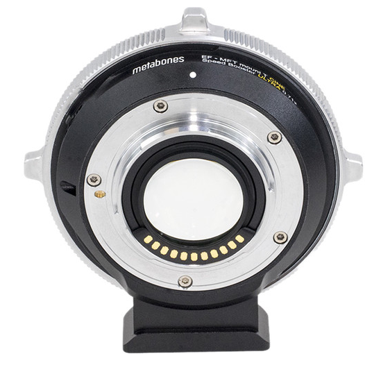 El adaptador Metabones Canon EF Lens to Micro Four Thirds T CINE Speed Booster ULTRA 0,71x (quinta generación) mejora los objetivos con montura Canon EF para cámaras Micro Four Thirds al reducir el factor de recorte, aumentar la apertura en 1⅓ de paso y admitir el enfoque automático, la estabilización de imagen y el control continuo de la apertura. Su montura con bloqueo positivo y su diseño resistente a las inclemencias meteorológicas garantizan un uso seguro y fiable, mientras que su óptica avanzada ofrece una mayor nitidez y un campo de visión más amplio.