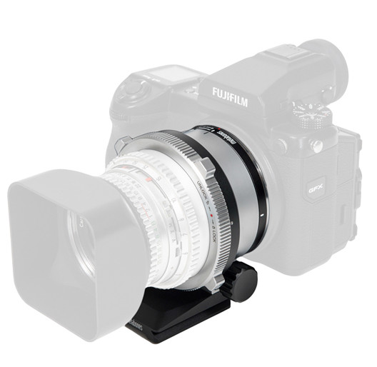 El adaptador está fabricado en una aleación de aluminio ligera con anillos de montaje de latón y está diseñado para ser resistente y soportar el desgaste, lo que reduce la tensión sobre la montura de la cámara. Para una fotografía estable con objetivos más pesados, el adaptador incluye un anillo de trípode giratorio y extraíble, así como una base de trípode extraíble tipo Arca. El mecanismo de bloqueo garantiza que los objetivos permanezcan fijados de forma segura durante su uso.