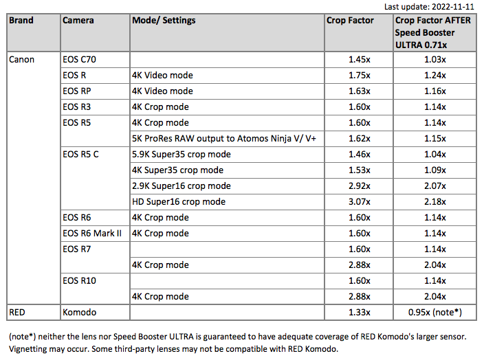 Objetivos con montura Leica R para cámaras con montura Canon RF. El producto está diseñado para cámaras de formato APS-C (por ejemplo, la Canon C70 y la RED Komodo, entre otras) o para su uso con el modo APS-Crop de las cámaras EOS R3, R5, R6, EOS R y EOS RP.