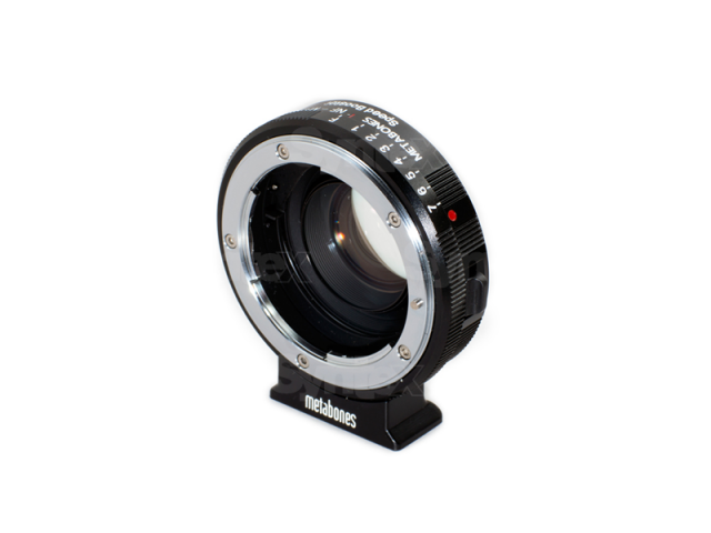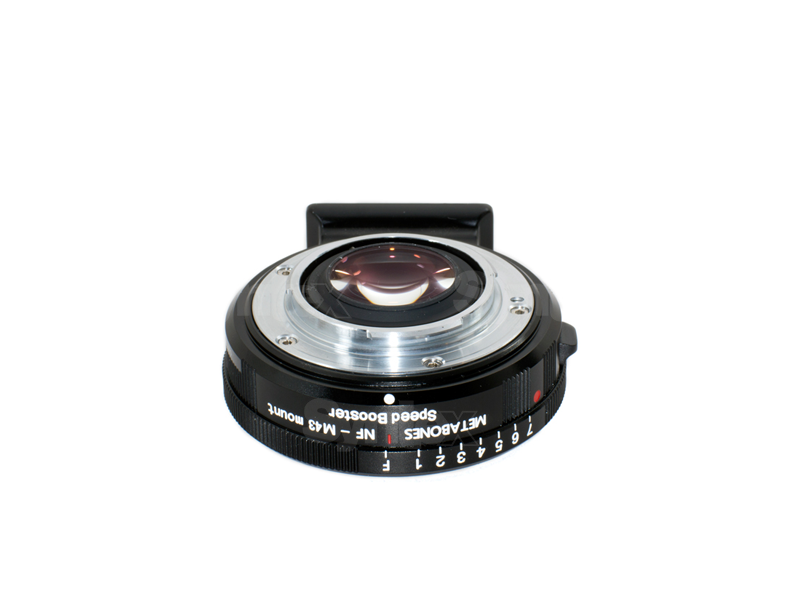 Adaptador para montar objetivos Nikon F/G en la cámara Blackmagic Pocket Cinema Camera. Además de adaptar la montura para los objetivos Nikon, reduce la distancia focal de los objetivos y disminuye el factor de recorte de la cámara de 2,88x a 1,75x, mientras que la luminosidad de los objetivos montados aumenta hasta f/0,74. Por ejemplo, un objetivo de 50 mm f/1,2 se transforma, al utilizar el adaptador, en uno de 29 mm f/0,74, ¡o un objetivo Sigma de 18-35 mm f/1,8 se convierte en uno de 10,5-20,3 mm f/1,0!