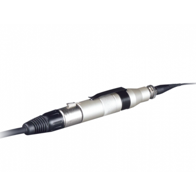 El MJ-53 permite conectar un micrófono de condensador con conector Mini XLR directamente a la entrada XLR de una mesa de mezclas que proporcione alimentación fantasma de 12 a 48 V CC.