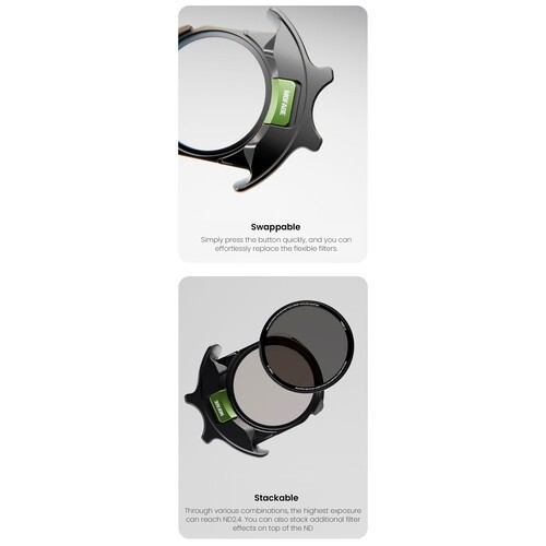 Insertos transparentes imprescindibles: Los cuatro filtros Pure Clear flexibles incluidos son imprescindibles para rellenar la ranura flexible cuando no se requieren efectos creativos o un ND adicional, y garantizan la distancia correcta de la montura del objetivo y la estabilidad del enfoque con el sistema de adaptadores POCO.