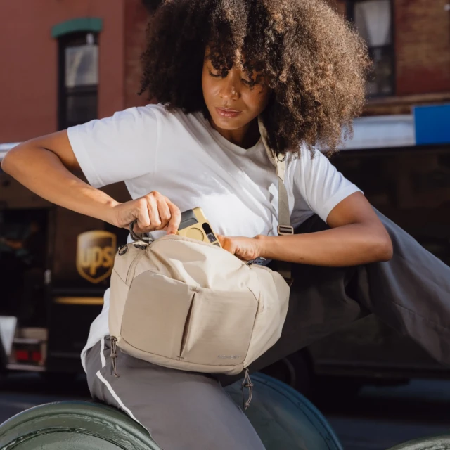 El característico bolsillo con cremallera en el hombro convierte la correa principal de la bolsa en un práctico sistema de bolsillos acolchados que te permite acceder al instante a tus objetos imprescindibles, como el teléfono, los filtros, la cartera o los AirPods. La bolsa tiene capacidad suficiente para una cámara completa con teleobjetivo y una tableta, pero al mismo tiempo es lo suficientemente pequeña como para seguir el ritmo del resto de tu equipo.