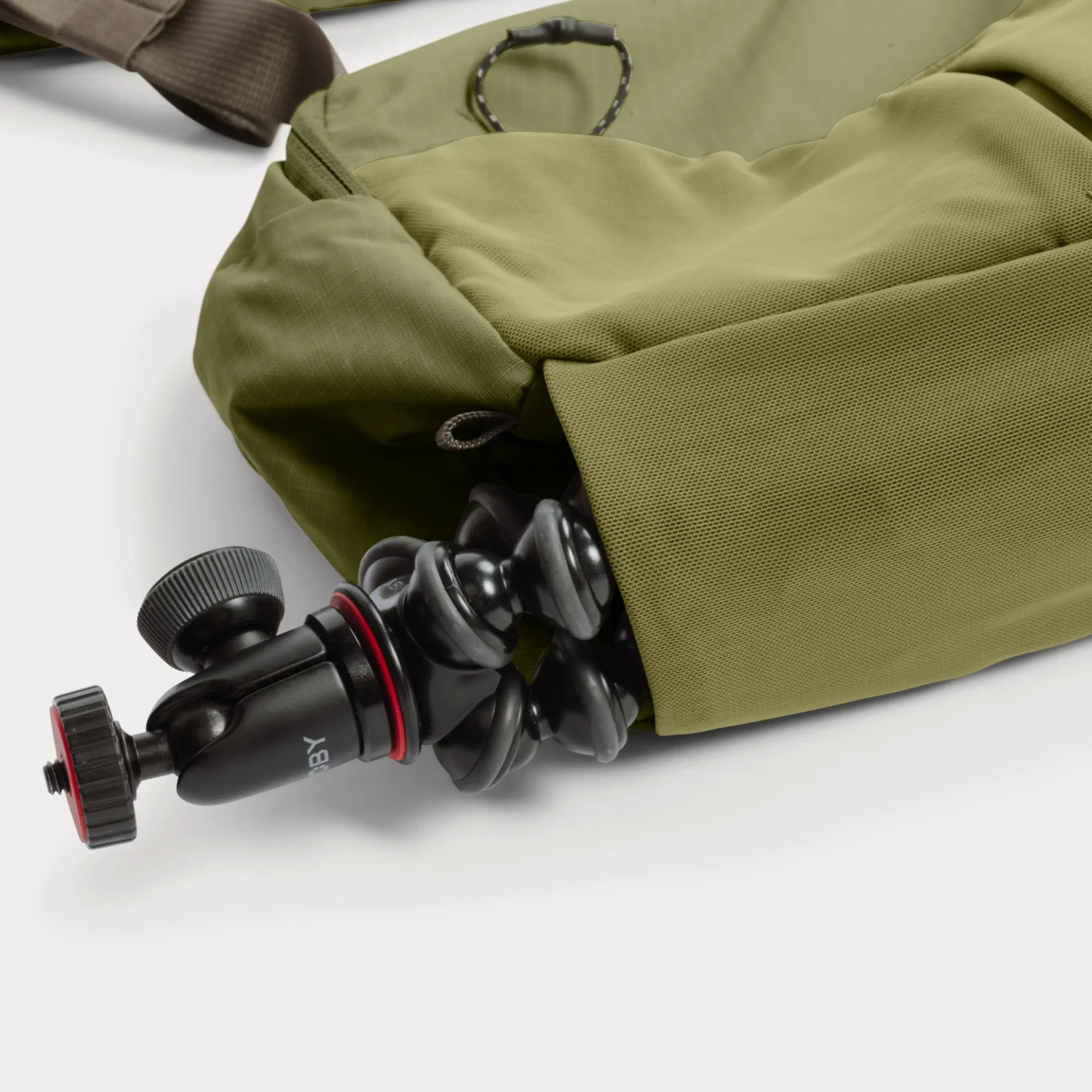 El característico bolsillo con cremallera en el hombro convierte la correa principal de la bolsa en un práctico sistema de bolsillos acolchados que te permite acceder al instante a tus objetos imprescindibles, como el teléfono, los filtros, la cartera o los AirPods. La bolsa tiene capacidad suficiente para una cámara completa con teleobjetivo y una tableta, pero al mismo tiempo es lo suficientemente pequeña como para seguir el ritmo del resto de tu equipo.