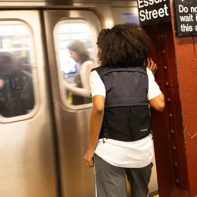 Permite pasar el cable MagSafe a través del chaleco desde un bolsillo específico para la batería situado en la parte trasera, de modo que puedas llevar el teléfono en el pecho y cargarlo al mismo tiempo durante el trayecto.